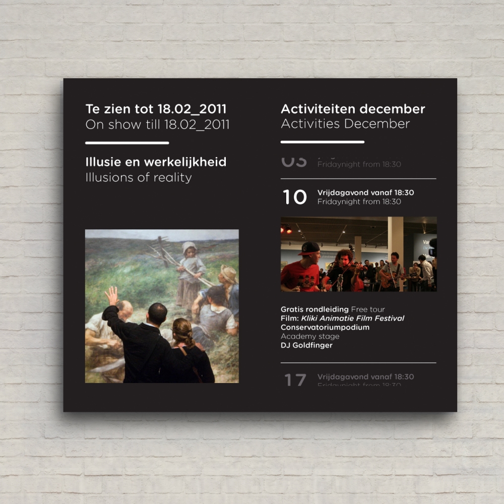 We tried to stay as close as we could to Van Gogh, and design or interpret as little as possible ourselves. Perhaps the most controversial element was the basis for the logo, the name of the museum in a black space. We tested this thoroughly, as it seemed strange to use a black surface as the logo for a painter famous for his use of colour. But in every panel test people quickly saw that, far from competing with Van Gogh, the intention was rather to draw a clear distinction between work and sender (branding).