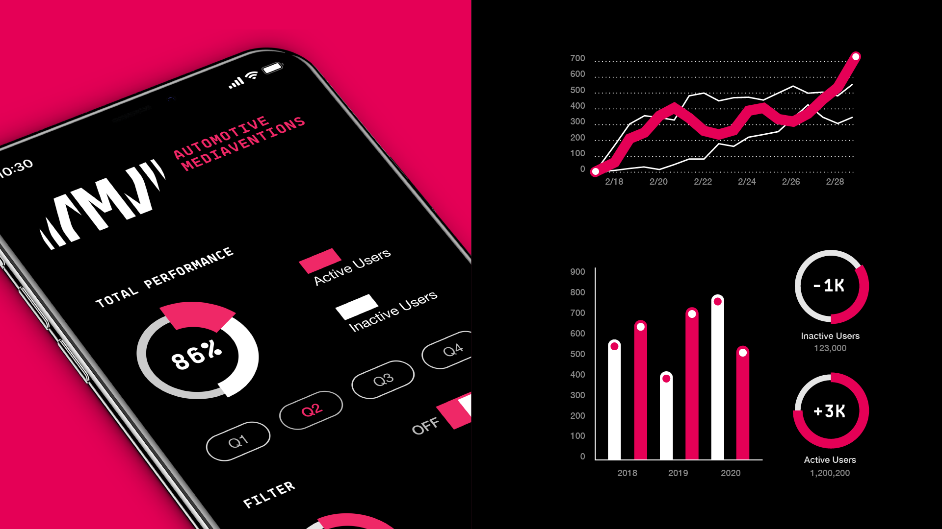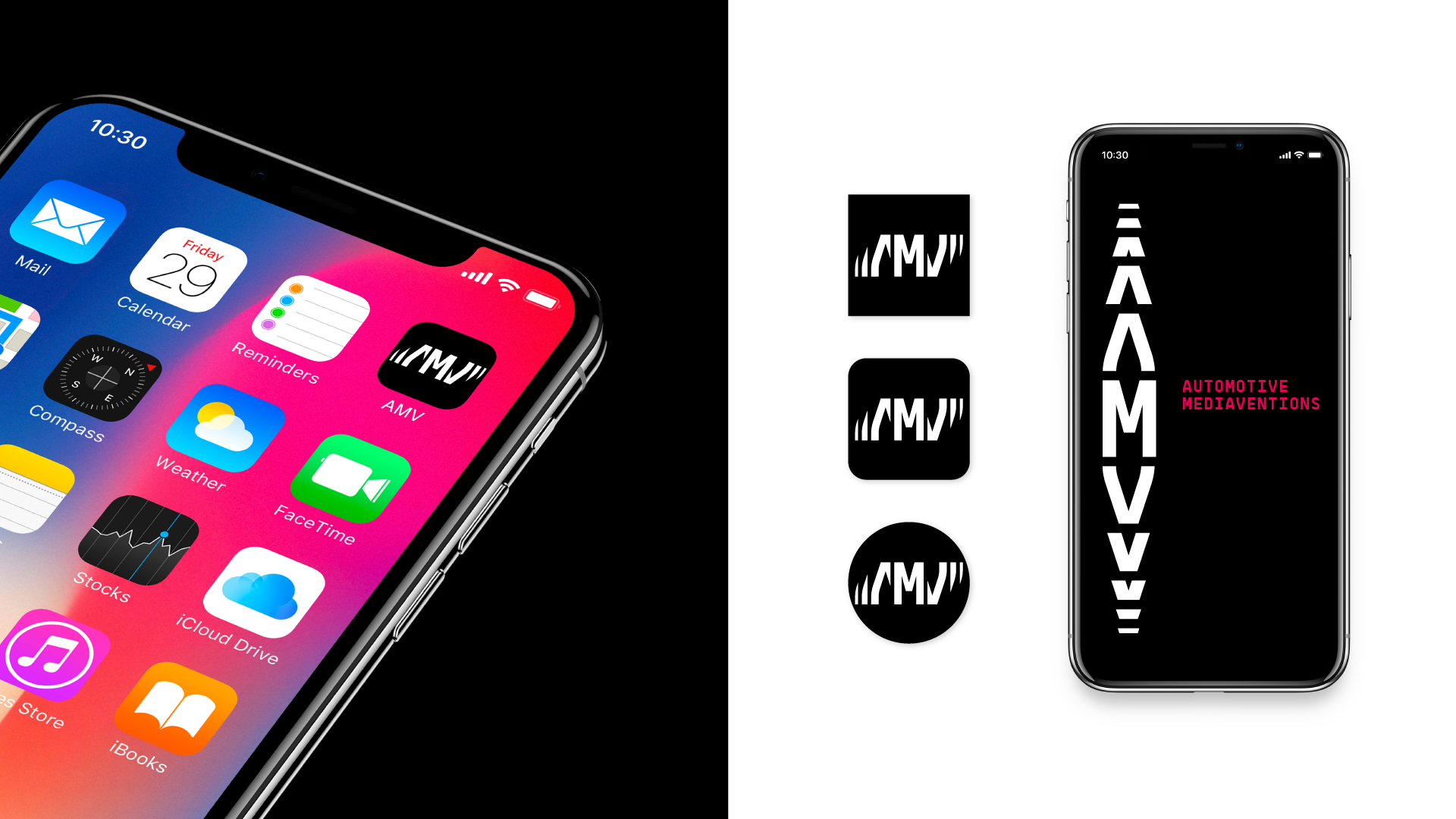 We visualiseerden de beweging en acceleratie in een bewegend logo dat verwijst naar de auto-industrie: het draaien van een motor, het profiel van een autoband. AMV is datagedreven, altijd in beweging en richting gevend aan de wensen en eisen van haar klanten.