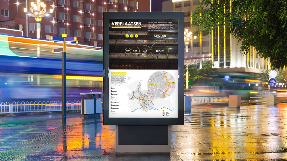 Op basis van de vier perspectieven ‘werken en leren’, ‘wonen’, ‘recreatie en avontuur’ en ‘mobiliteit’, is de regionale samenhang, verschillen en de gemeenschappelijke identiteit van de tien gemeenten onderzocht. Belangrijke data wordt inzichtelijk gemaakt aan de hand van een persona die een reis door de regio maakt en laat zien hoe mensen zich bewegen in de regio. Voor elk perspectief zijn infographics gecreëerd.